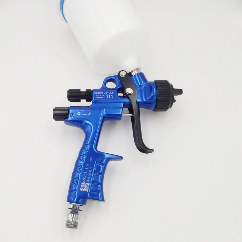 Constructed with a sturdy body and finished in anodized blue, the spray gun offers durability, corrosion resistance, and a comfortable grip for extended use.